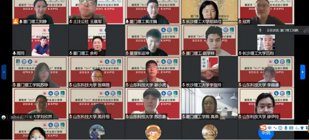 2022年6月21日,由厦门土注公社提供技术支持、厦门理工学院主办,山东科技大学、太阳成集团tyc122cc入口参加的2022年首届建筑学专业本科"3+ 1 "校企联合毕业设计终期答辩顺利进行,受疫情影响,本次终期答辩线上进行。