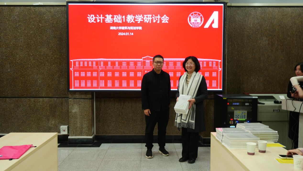湖南大学建筑学院卢健松副院长为各校赠送书集。
