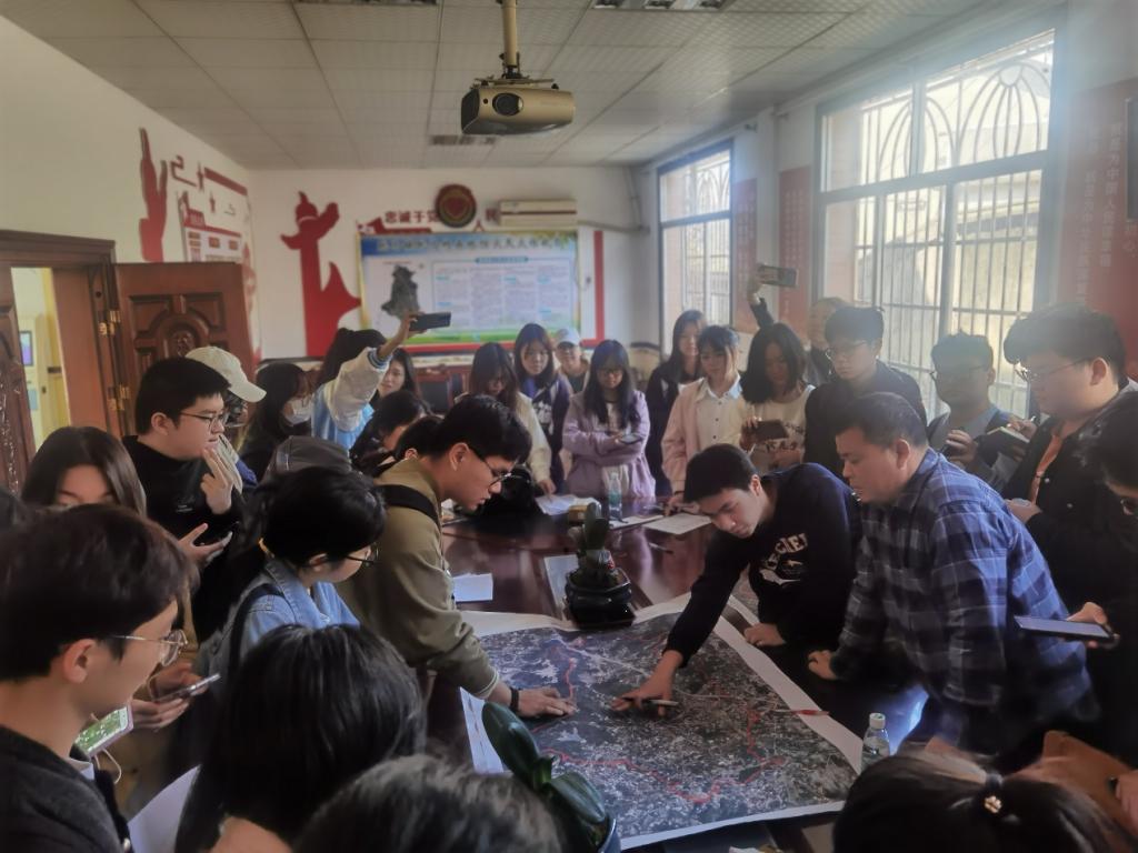 在跳马村,村党总支夏书记为大家详细介绍了跳马村的历史沿革,人口和产业发展等情况,尤其是近几年的乡村建设,提出了未来村庄产业转型发展的初步设想。村委书记希望同学们深入调查,发挥聪明才智为跳马村的未来发展贡献力量,同学们也在带队老师的引导下对跳马村的农业种植、乡村旅游、公共空间等方面进行了重点调查,并积极与夏书记进行沟通交流。