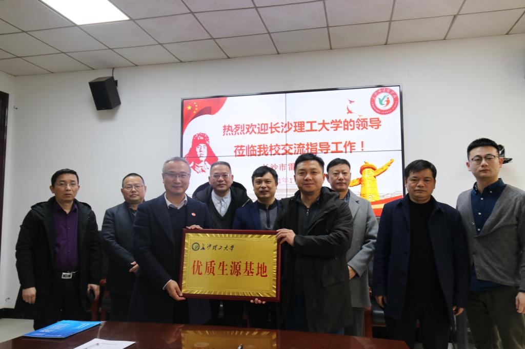 为了适应湖南新高考改革,进一步加强我校招生宣传实效,提升生源质量。1月20日上午,太阳成集团tyc122cc入口招生就业处副处长田向阳、建筑学院党委书记邱国良、副院长熊鹰、学院党委副书记谢士成、学工办王宇霖一同前往长沙市雷锋学校进行优质生源基地签约授牌仪式。长沙市雷锋学校校长章捷及学校领导班子出席签约授牌仪式。