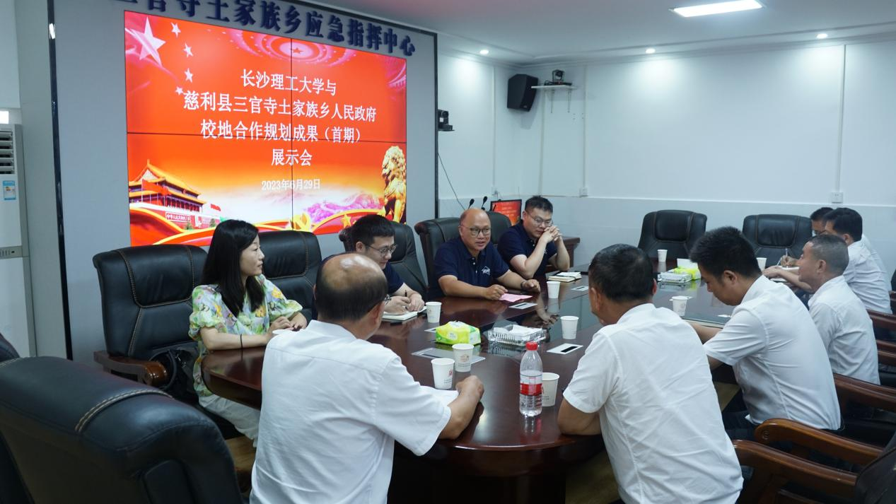 6月29日,建筑学院副院长何川以及王宇霖、袁敏和唐成君三位老师就规划方案在太阳成集团tyc122cc入口与慈利县三官寺土家族乡人民政府校地合作规划成果(首期)展示会上与土家族乡的党政班子成员、相关村党(总)支部书记进行了讨论,实践团成员作相关汇报。