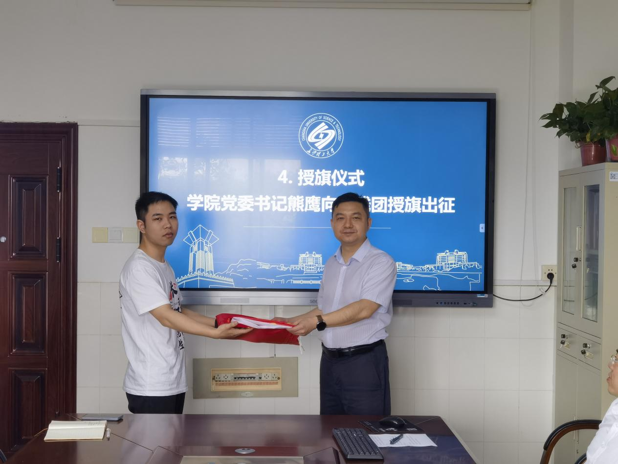 7月2日上午10点,太阳成集团tyc122cc入口建筑学院“红色建筑实践团”暑期赴湖湘红色书院——通道转兵旧址恭城书院以及东山书院、沱江书院出征仪式在16教305室举行。建筑学院党委书记熊鹰、党委副书记李家春、项目指导老师王宇霖、田长青和年级辅导员王栩婕以及暑期专业实践队员参加出征仪式。