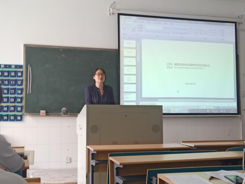 2021年6月22日下午,建筑学院在金盆岭校区16教313室举行了2022届本科毕业生生产实习动员大会。会议由建筑学院团委书记王宇霖主持,建筑学院副院长周晨、副院长何川、城乡规划系主任刘丹、科研办主任李琼以及全体2022届毕业生参加会议。