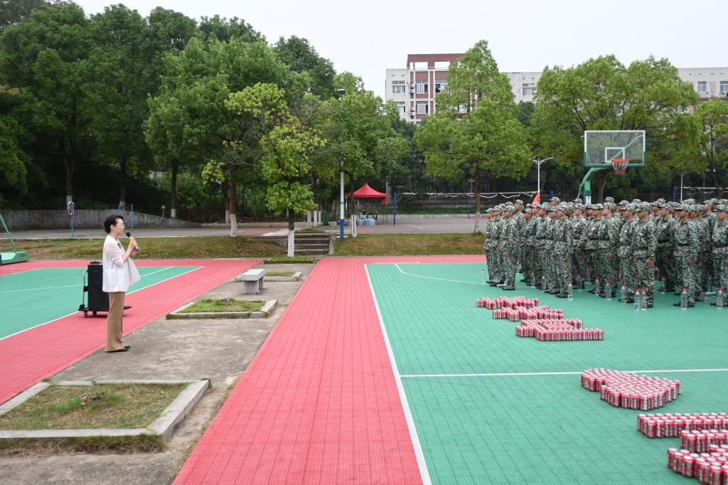 慰问期间,喻玲娜、陈杰为教官们送上学院精心准备的文创大礼包,也为全体新生发放了印有自己名字的可乐,现场气氛温馨热烈。