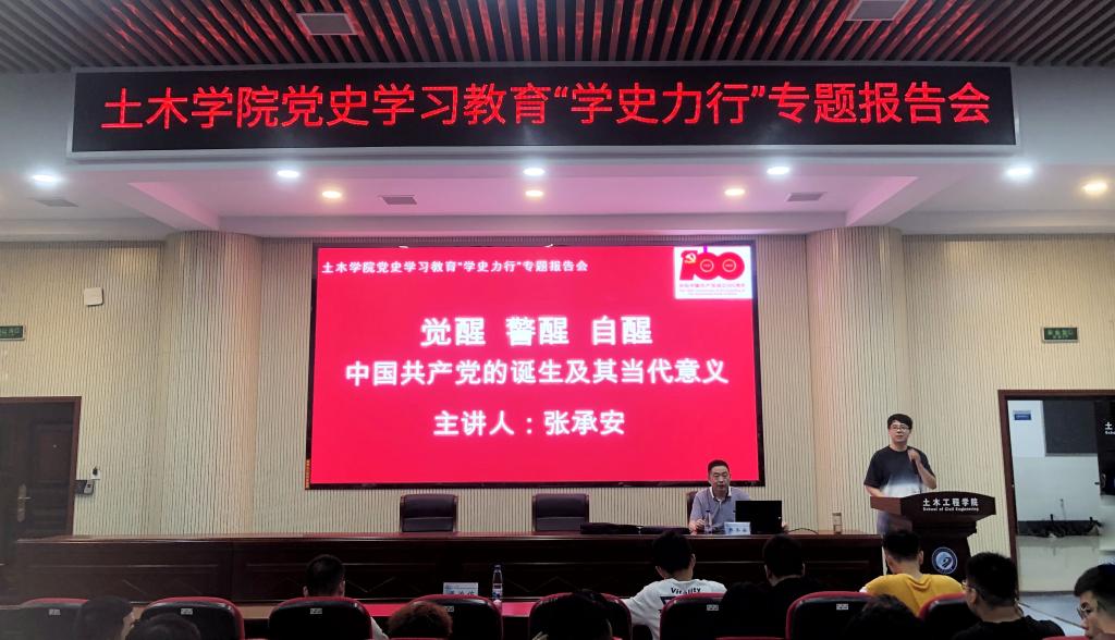 6月10日晚,土木工程学院党史学习教育“学史力行”第四专题报告会在工科二号楼B302学术报告厅举行。马克思主义学院张承安教授应邀主讲,院团委书记董治佑及全体本科生党员参加。