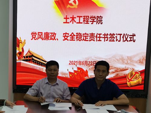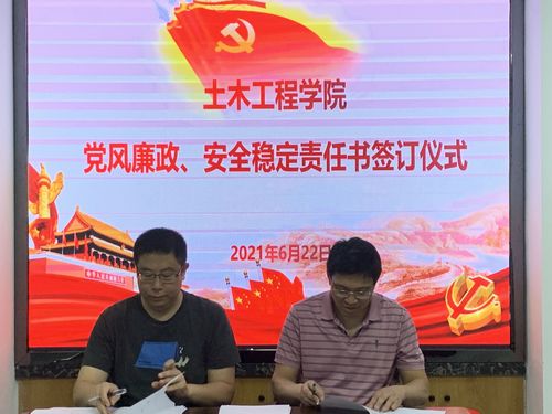 6月22日,土木工程学院举行了2021年度《党风廉政建设责任书》、《安全稳定工作责任书》签订仪式。
