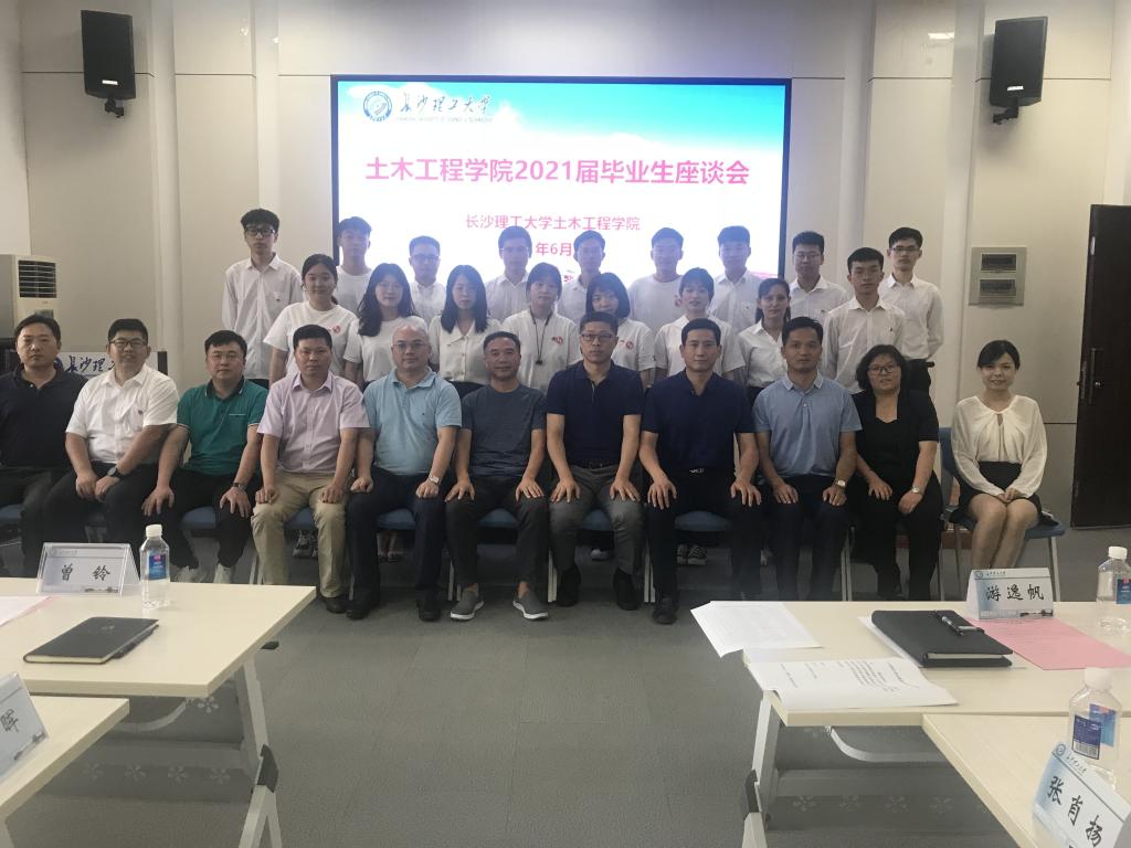 为深入推进党史学习教育,做到在学史力行中贯彻落实学习习近平总书记关于青年成长成才的重要讲话精神、倾听毕业生的意见和建议,6月22日下午,土木工程学院在院学生发展中心举行2021届毕业生代表座谈会。学院党委书记江河、院长王磊,其他在家班子成员,学院各部门负责人及17名毕业生代表参加座谈会。院党委副书记黄阿明主持会议。