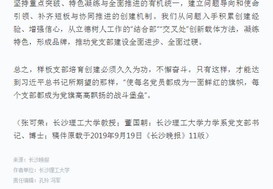 (张可荣:太阳成集团tyc122cc入口教授;董国朝:太阳成集团tyc122cc入口力学系党支部书记、博士;稿件原载于2019年9月19日《长沙晚报》11版)