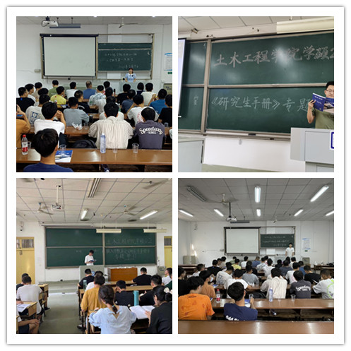 9月10日,土木学院研究生辅导员李小军及各班级临时负责人组织2021级研究生在金盆岭校区集中学习了《研究生手册》的教育与管理专题,2021级全体研究生参加了此次学习。