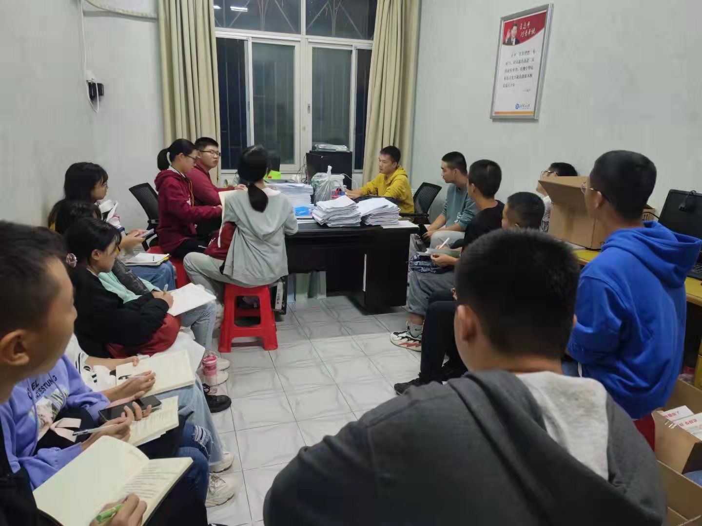 会议前期,年级组各部门依次发言,发言内容主要围绕各部门上周工作中存在的问题及下周工作计划。之后,辅导员邓文杰向年级组各成员讲述了后期年级工作和学院活动并对年级组各成员进行了更深入的工作指导。