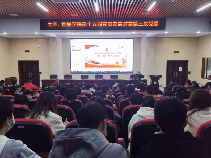 11月8日晚,土木工程学院联合食品学院在工科二号楼B302会议室开展了土木学院、食品学院第十五期党员发展对象第三次党课培训课程。马克思主义学院余乃忠教授应邀担任主讲,培训班全体成员参加。