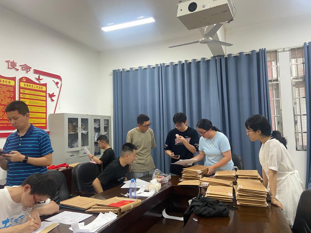 6月1日-6月9日学院组织档案审核人员分批次集中办公,快速审核,按照“一人一档一编码”的原则,以支部统一编码整理完善的党员档案为标准,填写《党员档案材料目录》。重点排查发展党员各环节时间逻辑是否自洽、决议审批程序是否规范、政治审查是否全面、填写内容是否准确、发展环节步骤是否完备、党员档案材料是否完整等方面的问题,确保按时高质完成党员档案审核工作。对内容不完整、不规范的档案,充分调查研究,按照实事求是的原则进行纠错补缺,有效提升党员档案管理标准化。