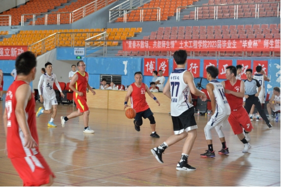 据悉,“毕业杯”师生友谊篮球赛是学院篮球俱乐部的系列活动之一,也是土木工程学院欢送2023届毕业生的系列主题活动之一。学院秉持“三全育人”的理念,积极发挥专业教师在第二课堂的育人功能,通过师生同台竞技,增进师生情谊,展现学院团结和谐、勇于拼搏、奋发向上的精神风貌。
