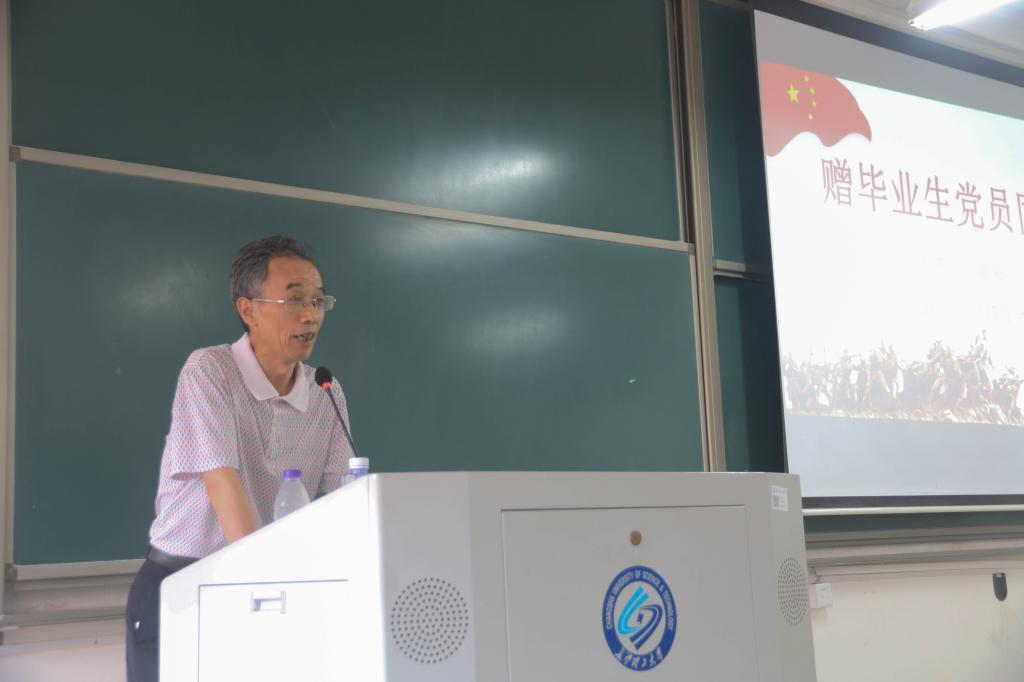 会议第一项:张可荣为全体毕业生党员上党课。他将胡适先生的“四味药方”赠予全体毕业生党员,并结合自身读书感悟,向学生党员们分享了卢新华的读书理念——“读三本书,走归零路”。他要求,作为党员,必须经常翻阅三本经典书籍:《共产党宣言》、《论共产党员的修养》、《中国共产党章程》。最后,他以老党员的身份对全体党员提出了四点期望:1.牢记自己的党员身份;2.关注党的发展变化,心系党的前途命运,投身党的伟大事业;3.不忘校园情、师生谊;4.为社会多作贡献。会议第二项:王煜坤对全体毕业生党员提出希望。他说,今后不论在学校还是工作岗位,都应努力学习,牢记党的宗旨,严格要求自己,努力提高自己为人民服务的本领,发挥党员的先锋模范带头作用,积极配合学校完成后续的各项离校工作。会议第三项:孙佳乐作文明离校工作部署。会议第四项:龙承运作党员组织关系转接工作说明。