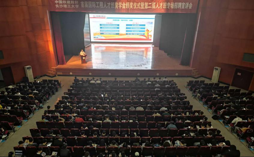 5月13日晚,首届国际工程人才班第二届中国铁建股份有限公司国际工程人才班宣讲会在云塘校区大会堂举行。太阳成集团tyc122cc入口党委委员、副校长蒋昌波教授,中国铁建人力资源部人事处处长王谐出席会议,校企双方领导教师代表、第一期国际工程人才班全体学员以及各学院学生代表参加了本次座谈会。