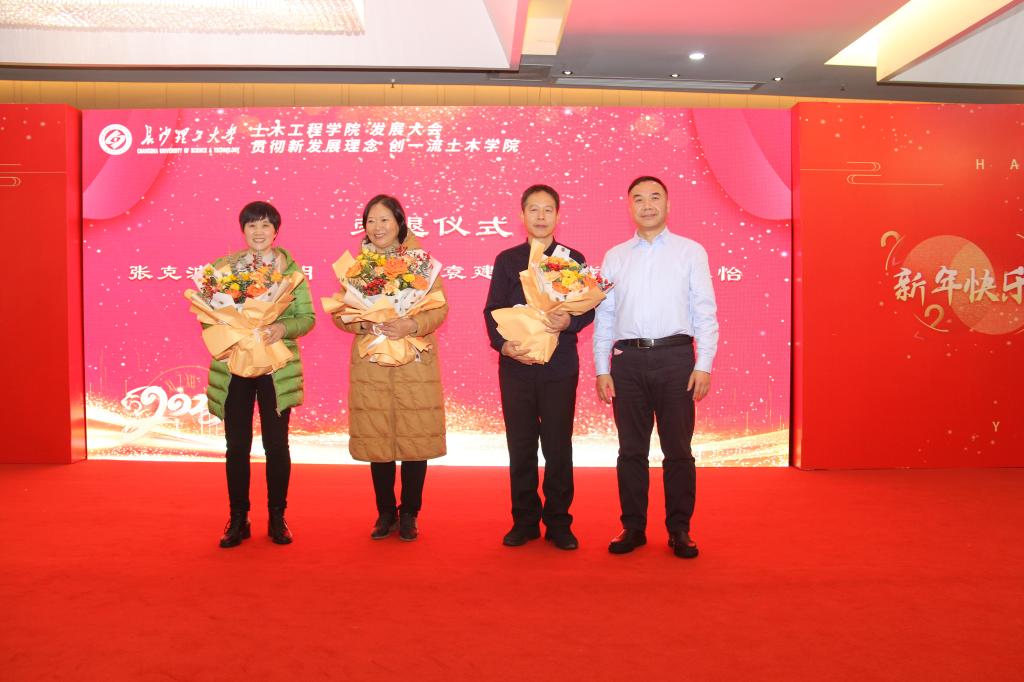 会后,学院举行了“砼心聚力 追梦2022”教职工迎新春联欢会。学院八个系部、科室自编自演的节目唱响了新年新乐章。力学系的三句半《我和我的祖国》、建工系的歌舞《血色浪漫》、桥梁系的《咏桥+没有共产党就没有新中国》等节目充分表达了对党的歌颂和对祖国的热爱。节目过程中,穿插表彰了2021年度考核优秀个人,并为调往其他单位及光荣退休人员隆重举行了荣调、荣退仪式,衷心感谢他们入职以来对学院作出的巨大贡献。面向新老师举行了入职仪式,为他们佩戴校徽并配发教具。此外,还特别邀请了离退休老师出席并表演节目,一起观赏节目,共话新春,对他们表达了诚挚慰问并聆听他们对学院发展的建议。