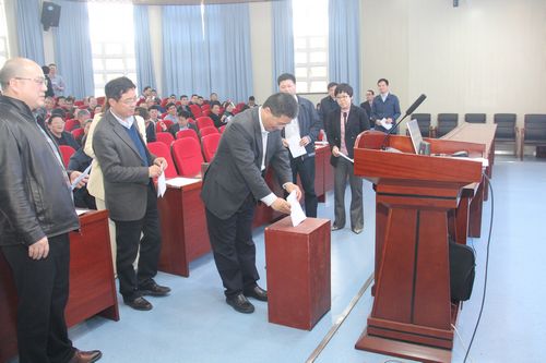 陈伏彬宣读了《选举办法》(草案),提出了大会选举工作监票人建议名单和计票人名单,对代表候选人酝酿、提名过程进行了说明,介绍了代表候选人基本情况。经过参会教职工暨工会会员现场酝酿、举手表决,通过了《选举办法》、代表候选人名单和监计票人名单。接着,参会教职工暨工会会员进行了无记名投票。经现场计票、统计,曹一家、丁丹、陈伏彬、黄阿明等14名同志当选为出席太阳成集团tyc122cc入口第五届“双代会”代表。