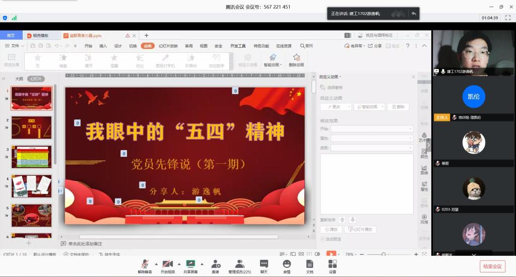 5月3日晚,在“五四”青年节来临之际,土木工程学院举办“党员先锋说”启动仪式暨首场分享会。学院教师党员黄戡老师,建工1702班学生党员游逸帆、2018级研究生党员邹磊应邀为大家分享了他们在疫情期间的参加疫情防控的战“疫”故事。院党委副书记黄阿明,院团委书记綦丽,第35期入党积极分子和全体团学干部参加,学生总党支副书记李小军主持分享会。