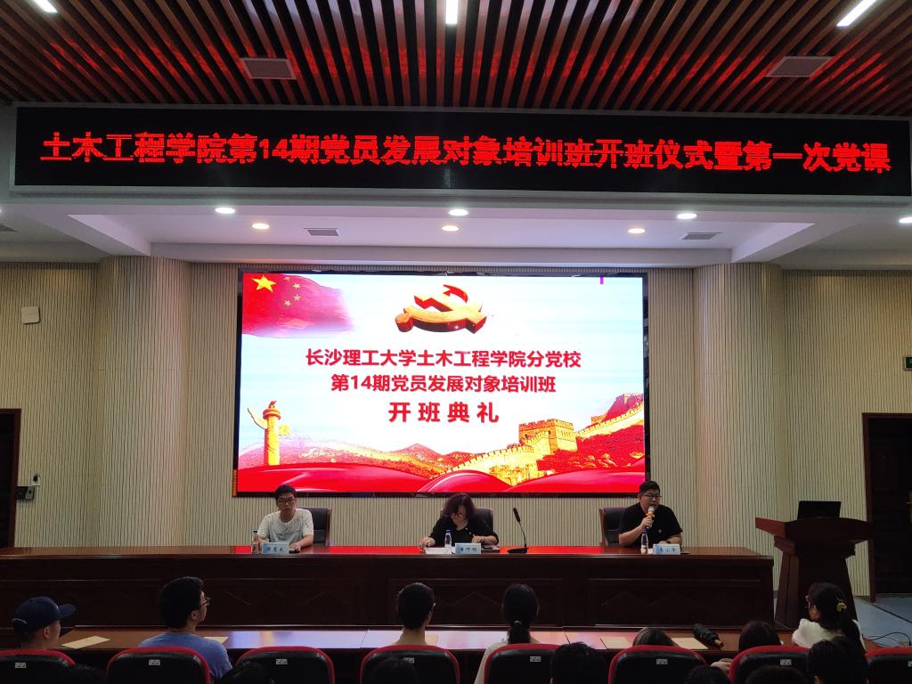 会议在庄严的国际歌声中拉开序幕。候惠文宣读《土木工程学院第14期党员发展对象培训方案》,他从培训形式、课程设置、实践活动等方面整体介绍了此次培训班的各项安排。希望全体学员自觉把党的理论作为自身的思想武器,提高党性修养,切实提高自身思想水平。学员代表傅思怡和学习党员代表胡煦龙先后发言,他们表示将共同加强政治理论学习,坚定理想信念,端正入党动机,强化服务意识,把为人民服务的宗旨落实到实际行动中来。