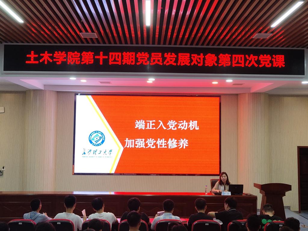 5月13日中午,为端正入党动机,加强党性修养,更好地发挥模范先锋作用,土木工程学院分党校在工科二号楼B302组织开展“端正入党动机,加强党性修养”专题党课,学院党委书记丁丹应邀主讲,党校部候惠文及第十四期发展对象培训班全体学员参加。