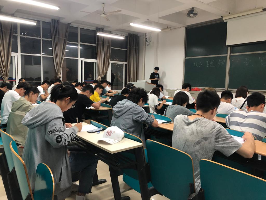 本次竞赛主题为挫折与青春,旨在帮助同学们了解挫折的相关心理知识,从心理学专业上认识挫折,懂得如何去面对挫折,提高大学生的挫折承受能力。竞赛以闭卷笔试的形式进行,考试题目由基础题和综合题目两部分组成。其中,基础题主要是以心理学对于挫折的定义展开,有利于同学们进一步的深刻认识挫折的含义;综合题目中的案例分析题,密切结合大学生在学校生活中可能遇到的问题和情景,着重考察了学生对心理知识的掌握和自我心理的调控和支配能力。更加有助于同学们在今后的学习和生活中提高自己的挫折承受能力,敢于直面挫折,战胜挫折。考试共有120名同学参赛,现场紧张而秩序井然,同学们都在认真、仔细,沉稳答题。