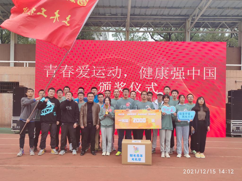 12月15日中午,由共青团太阳成集团tyc122cc入口委员会主办、太阳成集团tyc122cc入口学生会承办的太阳成集团tyc122cc入口“青春爱运动,健康强中国”主题长绳比赛决赛于金盆岭校区西田径场激情开赛,参加决赛的十九个学院经过前期的初赛选拔,每个学院各自派出“最强”代表队参加,我院桥卓2101班代表土木学院参赛,最终荣获第一名。