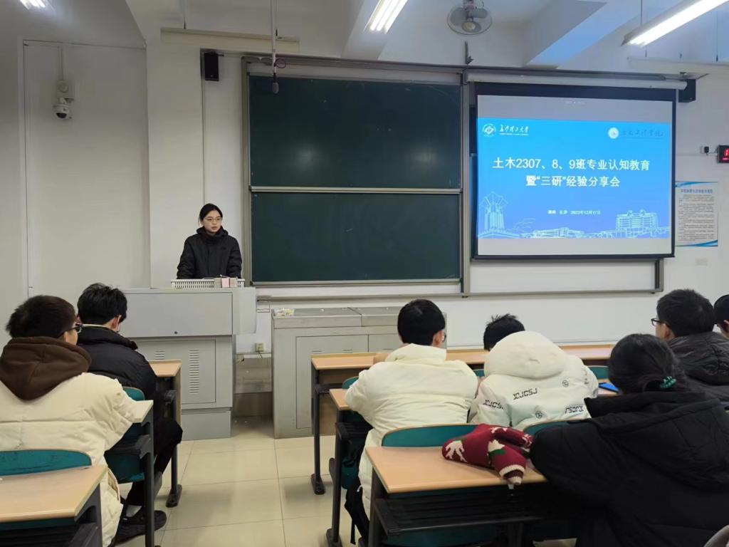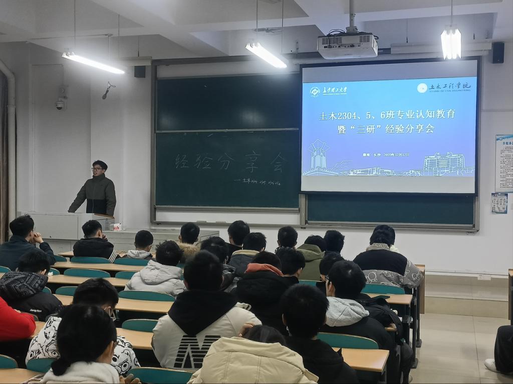 参观完毕后,学院为2023级新生安排了由学长学姐主持的三研分享会。他们详细地介绍了考研、保研、科研的基本要求和经验,分享了自己在本科学习、考研时期的学习方法和学习经验,并呼吁2023级土木学生认真规划未来的学习道路,尽早做准备,以梦为马,不负韶华。