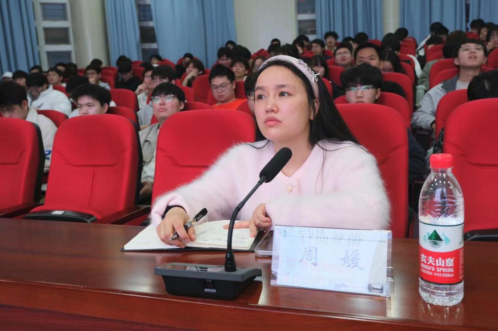 高年级学生周苇朝等进行了保研经验分享,他们展示了在大学期间的收获,重点分享了自己在结构设计大赛、力学竞赛、“挑战杯”大赛、“互联网+”大赛等方面的经验,用自己的故事鼓励更多的同学积极投身学习和实践。