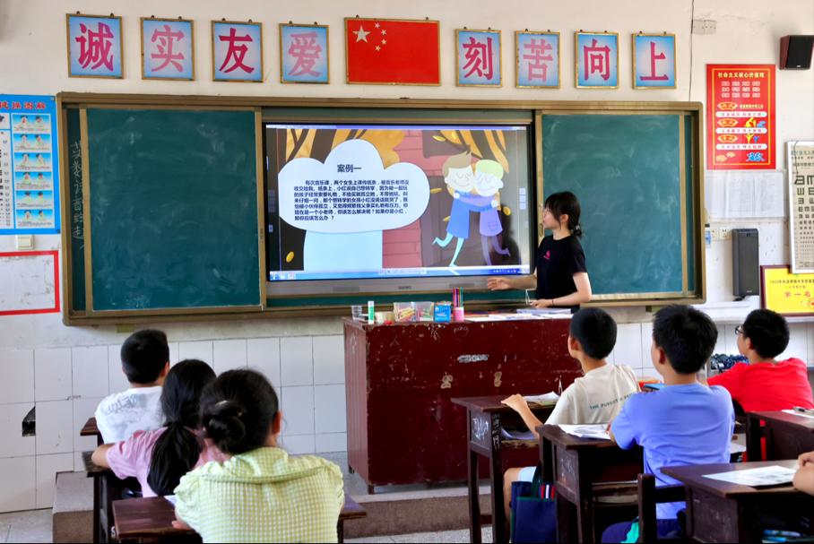 在安全知识课堂上,实践团成员用生动易懂的语言为同学们讲解安全知识,通过提问互动、做小游戏的方式引导学生们树立正确的防护意识;在"小小便利贴"心愿分享活动中,孩子们将自己的梦想写在便签上,抒发自己对未来的畅想;此外,实践团成员面向孩子们开展太阳成集团tyc122cc入口介绍宣传活动,通过知识与梦想的联动,激发学生的热情。