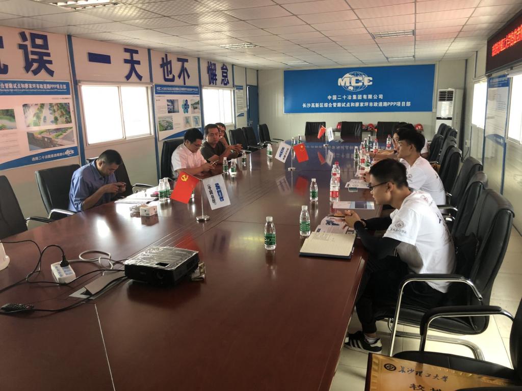 首先,企业方举办了一个简短的座谈会,技术总监周峰向实践团讲解了中国二十冶集团的概况以及管廊项目的结构体系、工艺流程和施工重难点,企业方细致的讲解让实践团对管廊工程有了初步的了解。