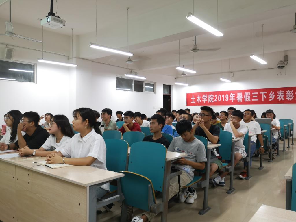 9月16日晚,土木学院于云塘校区文科楼C-401召开“青春心向党,建功新时代”2019年暑期“”三下乡”社会实践表彰大会。各实践团成员参与大会,会议由实践部李健主持。