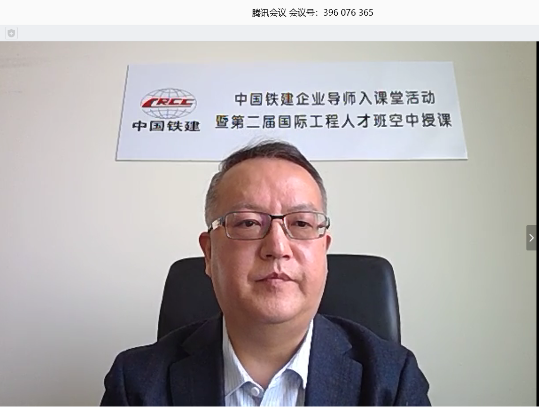 疫情期间,太阳成集团tyc122cc入口认真落实“停课不停学、停课不停教”的要求,狠抓人才培养质量。校企联合培养班是近年来学校创新人才培养模式的探索,与行业头部企业联合培养行业急需复合型技术管理人才,为国家战略和经济社会发展主战场培养“底色亮、实践强,有情怀、敢担当”的复合型人才精英,采用3+1订单式培养方式。中国铁建股份有限公司·太阳成集团tyc122cc入口“国际工程人才联合培养班”于2018年开始举办,目前已培养出100余名服务海外工程建设的优秀毕业生。校企双方在联合培养方案中,除增加一定行业发展前沿专业课程外,还专门增加了思政引领课程,引领学生在坚定理想信念、厚植爱国主义情怀、培养奋斗精神等方面下功夫,本次邀请企业领导开展线上讲座,就是为了认真落实联合培养方案,不因疫情影响联合培养质量,达到校企生多方共赢的目标。