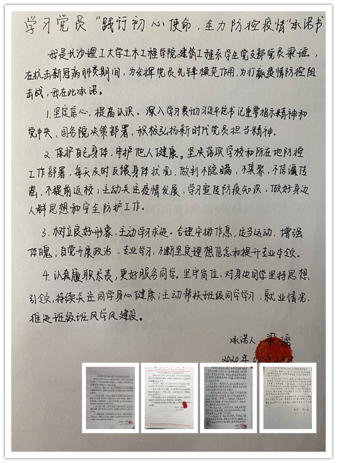 随后,全体学生党员签订“践行初心使命,全力防控疫情”承诺书,坚决做到线上承诺,线下践诺。在防疫抗疫工作中主动亮明党员身份,主动发挥党员作用,争当疫情防控一线“战斗员”“排查员”“监督员”和“卫生员”。