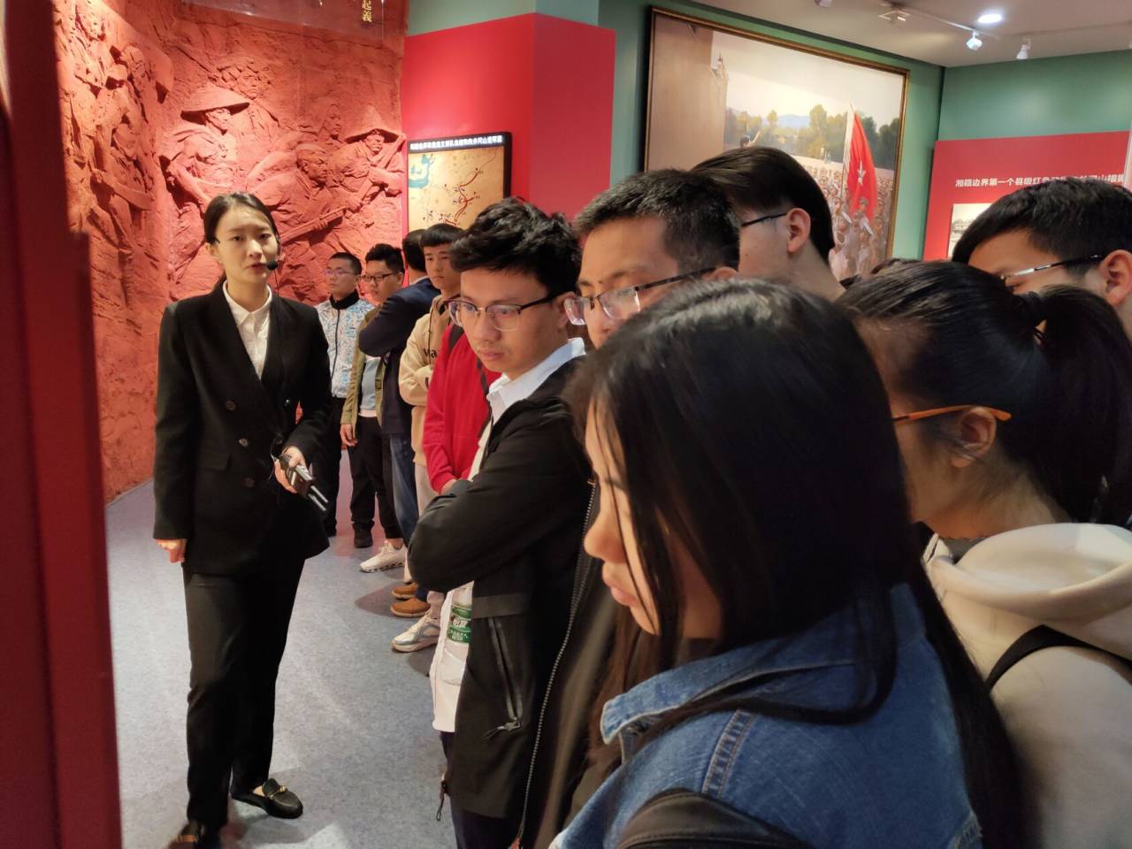 实践活动中,全体入党发展对象跟随讲解员集中参观了“开辟新天地”、“描绘新画卷”、“谱写新篇章”三个专题展厅,通过新民主主义革命、全面建设社会主义、改革开放三个历史时期展示了党领导三湘儿女奋斗的历程。最后围绕着“三湘群英谱”这一专题,讲解员着重介绍了以毛泽东同志为代表的湘籍优秀中国共产党员的生平事迹。学员们在参观过程中认真听讲,积极思考。