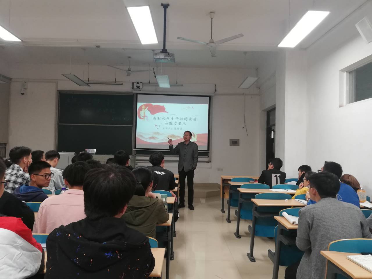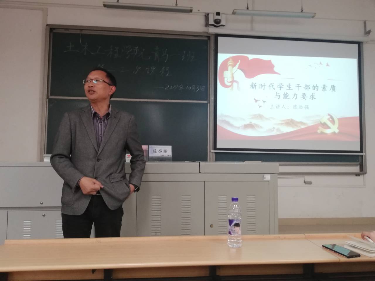 10月31日晚,土木学院第十二期青年马克思主义者培训班第三讲在云塘校区文科楼A205开课。土木学院陈历强以“新时代学生干部的素质与能力要求”为题,应邀为青马学员授课,青马一班全体学员参与学习,本次授课由院团委副书记陈雨萱主持。