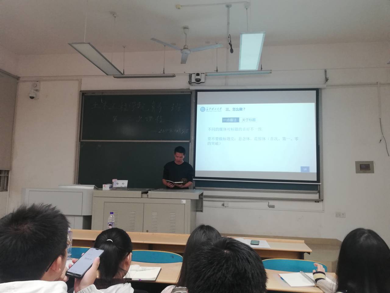 “于平凡处发现闪光点,越是在普通人中,越是有感人肺腑的力量。”她强调,从普通的教师、学生中挖掘出的真实新闻案例能使更多的人形成共鸣。她结合土木学院老教师周先贵的实例,寄语大家“伟大出自平凡,英雄来自人民”,要具备发现平常人闪光之处的慧眼,把握好宣传关口,深挖新闻事实,凭借宣传塑造出学院的良好形象,形成特质,打造出人文氛围。