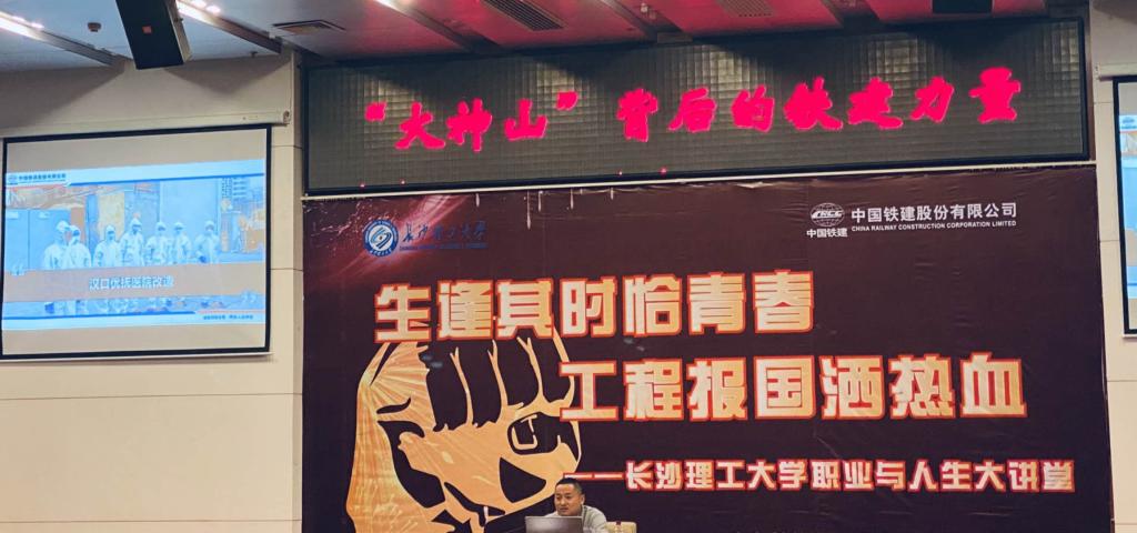 如何将爱国主义根植于学生内心?如何引导工科学子怀报国情、立报国志、践报国行?如何把专业教育融入思想政治教育?继空中课程思政第一辑《火神山背后的土木力量》后,近日,思政课程第二辑《火神山背后的铁建力量》线下火爆开讲。十二次逆行战“疫”,始终冲锋在“火线”前沿的国铁建十一局四公司武汉事业部总经理霍强受邀前来太阳成集团tyc122cc入口,结合自己抗“疫”亲身经历,讲述火神山背后的铁建力量,为广大师生上了一堂生动的专业教育+思想政治教育课。