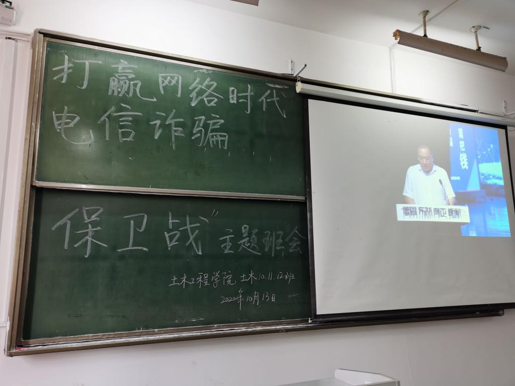 10月13日,土木工程学院以班级为单位开展了“打赢网络时代电信诈骗保卫战”主题安全班会,年级辅导员李小军、文岚老师以及2020级全体新生参加班会。