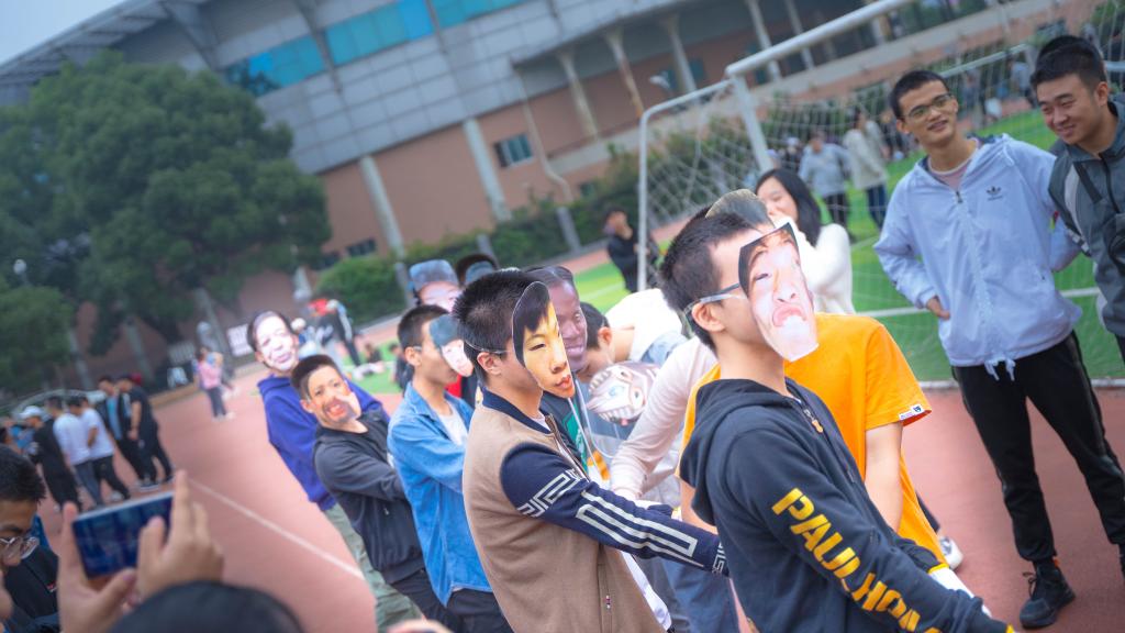 本届趣味运动会共有拔河、滚雪球、多足虫竞走、多人跳绳、铁人三项五个项目。它不仅考验个人能力,更加考验团队协作能力,侧重增强班级凝聚力、集体荣誉感和团队合作能力。本届趣味运动会体现了“全员参与、全面发展”的活动理念,将 “趣味”这一思想融入运动会,从开幕式到所有项目的比赛,真正体现了趣味性、娱乐性、普及性、健身性。同学们都玩出了精彩,赛出了新意,表现出了极高的热情。工力2001班全体拔河项目的队员戴着面具参加比赛。土木2002班分工明确,场上场下全员参与拔河比赛。所有同学都能在赛场上大显身手,在活动中体验参与的快乐,在比赛中享受胜利的喜悦。