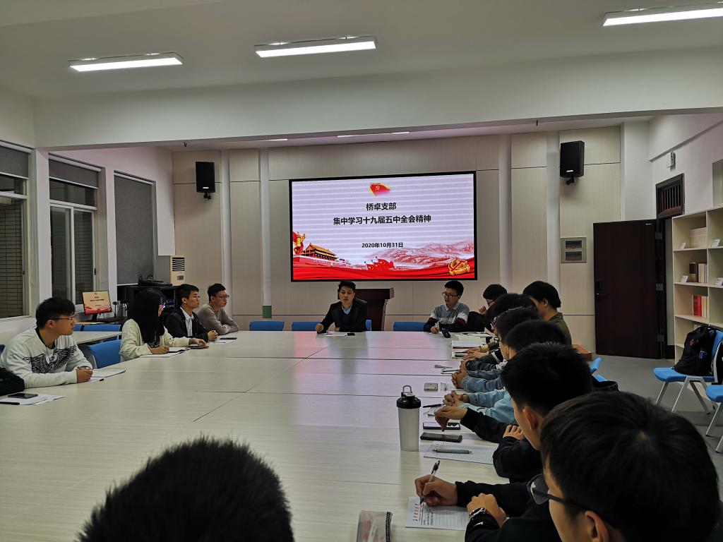 10月31日晚,土木学院桥梁(卓越)专业学生党支部组织召开全体学生党员和入党积极分子会议,传达学习党的十九届五中全会精神,支部书记龙承运主持会议。