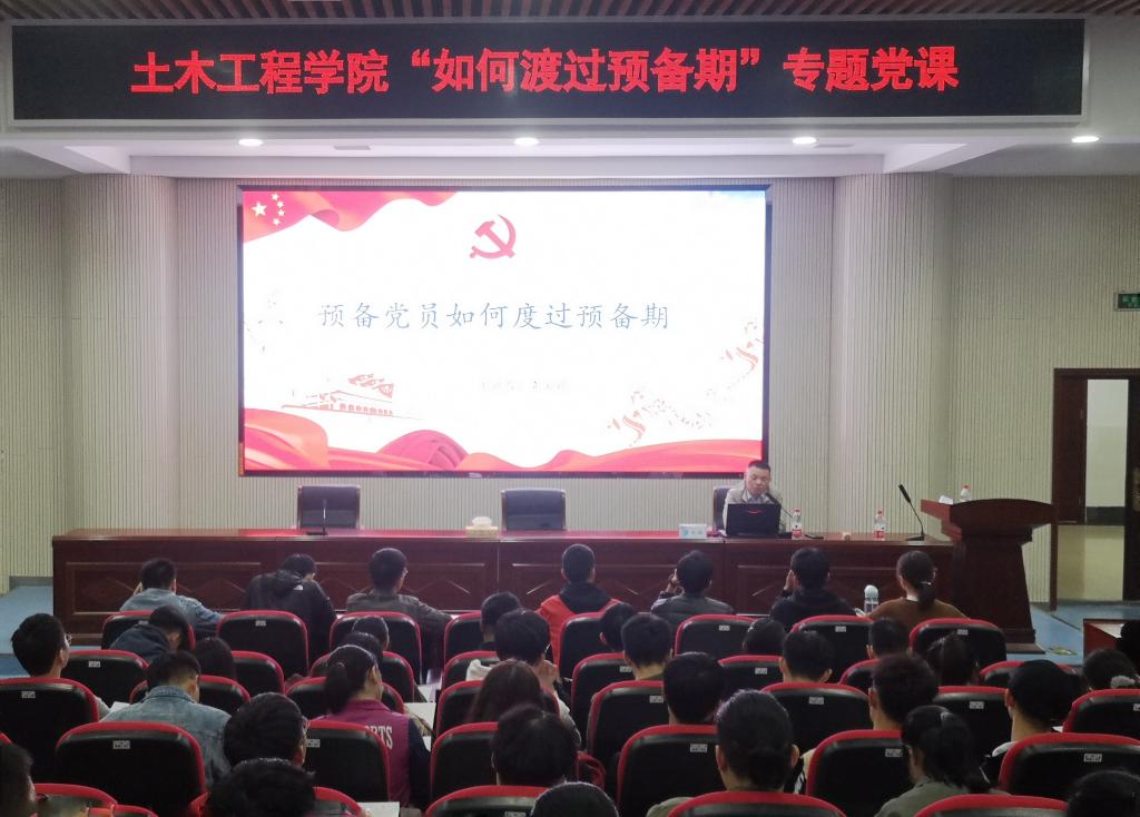 11月11日晚,在开班典礼后,土木工程学院分党校组织第22期预备党员在工科二号楼B302开展《预备党员如何度过预备期》专题党课,校党委组织部龚文斌副部长应邀主讲,院党委副书记(代理)黄阿明,学生党总支副书记李小军及第22期预备党员全体学员参加。
