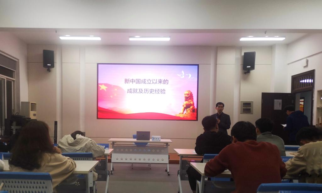 11月13日晚,土木工程学院分党校组织第22期预备党员在工二A304开展《新中国成立以来的成就及历史经验》专题党课,马克思主义学院马克思主义中国化系主任邹新树应邀主讲,党校部谭桧及第22期预备党员全体学员参加。