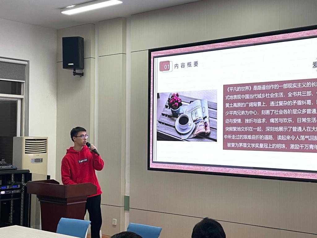 在阅读分享环节中,共有7位朗读者分享了他们的阅读体会。庞瑞等同学带大家品读了《平凡的世界》中的不平凡,展现了那个年代人的善和美以及面对苦难坚忍不拔的抗争精神,也提出了新时代阶层固化存在的问题;刘沛奇同学带大家了解了《全球通史》中用全球史观整体性地刨析历史的创新,也告诫大家要警惕西方学者中国历史的解构和消解,这是文化侵略的具体表现;李荣峰同学带大家感受了《围城》中人物在思想上的软弱和缺陷,每一个人心中都有一个围城,唯有乐观的面对,才能逃脱束缚和压力;从徐乐康同学的解读中,也看到了《追风筝的人》中少年哈桑永恒的忠诚,和少爷阿米尔的自我救赎;在周翔同学带领下,大家再次重温了《共产党宣言》,从中汲取了理论的力量,真正理解了什么是共产主义,什么是共产党人的初心和使命。