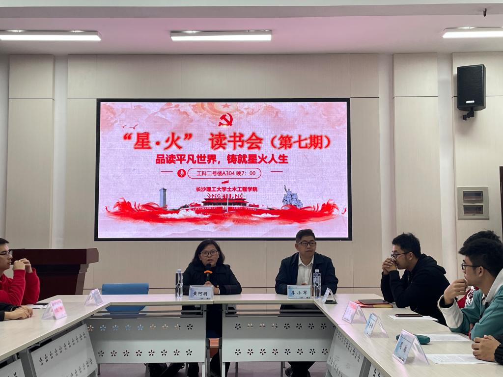 11月20日,土木工程学院党委主办的“学四史,明初心,扬青春,担使命”庆祝建党100周年系列主题活动——“星·火”读书会(第七期)于工科二号楼学生发展中心举行。本次读书会的主题为“品读平凡世界,铸就星火人生”,院党委副书记(代理)黄阿明,学生党总支副书记李小军、第36期积极分子培训班部分成员参加,院学生党建中心副主任申翔主持。