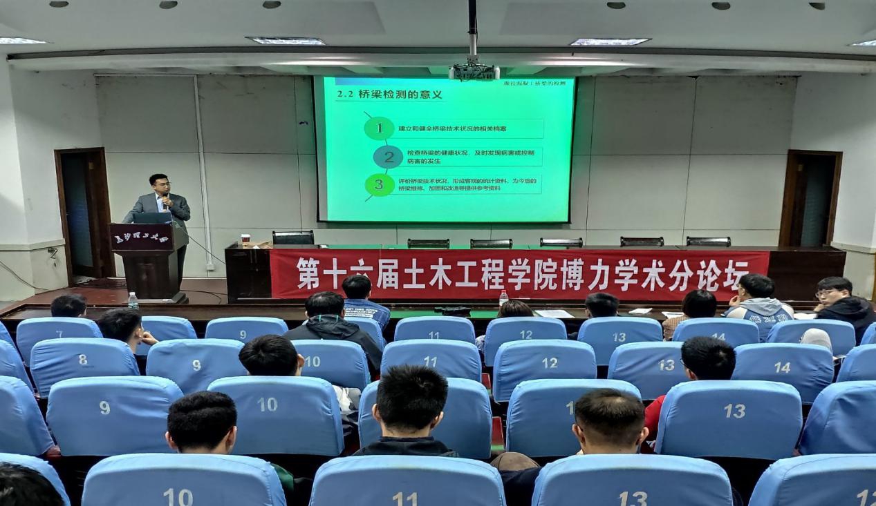 11月20日晚,土木学院第十六届博力学术分论坛第四场讲座在金盆岭校区12教200教室顺利举行。主讲人为我院马亚飞副教授,主题为“服役混凝土桥梁安全评定及其应用”。此次论坛由院研会主席王冲主持。研究生共计到场200余人。
