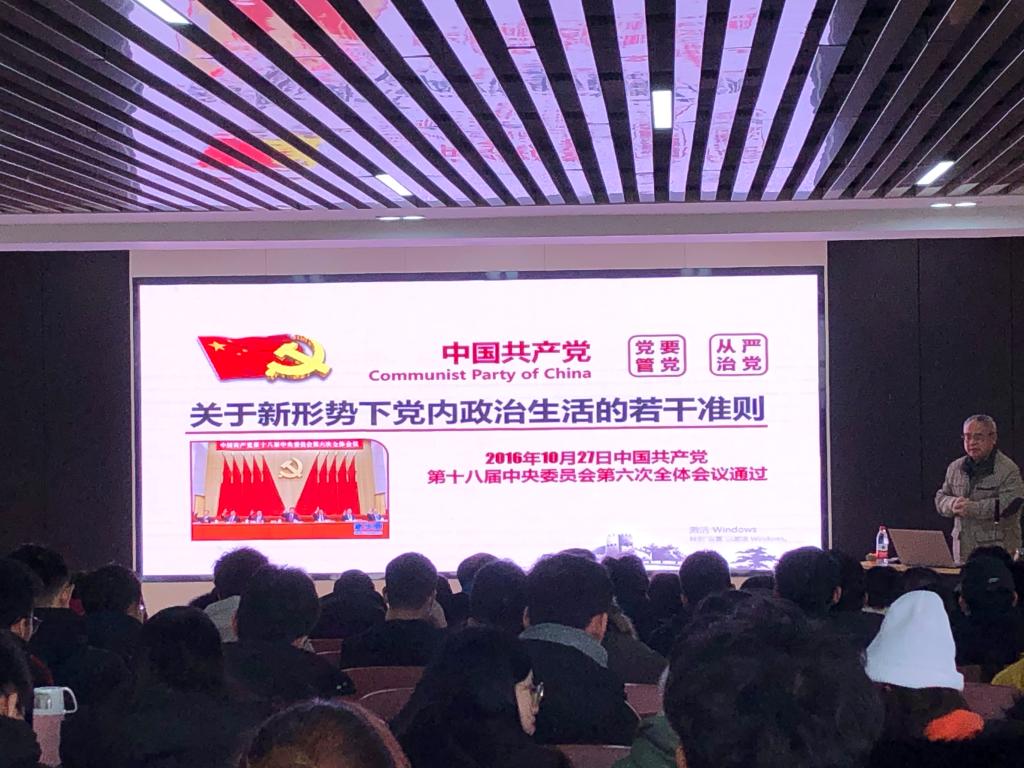 1月7日中午,土木工程学院分党校在工三A307组织开展“党内政治生活若干准则”专题党课,化学学院专职组织员邓豫应邀主讲,第十三期发展对象培训班全体学员参加。