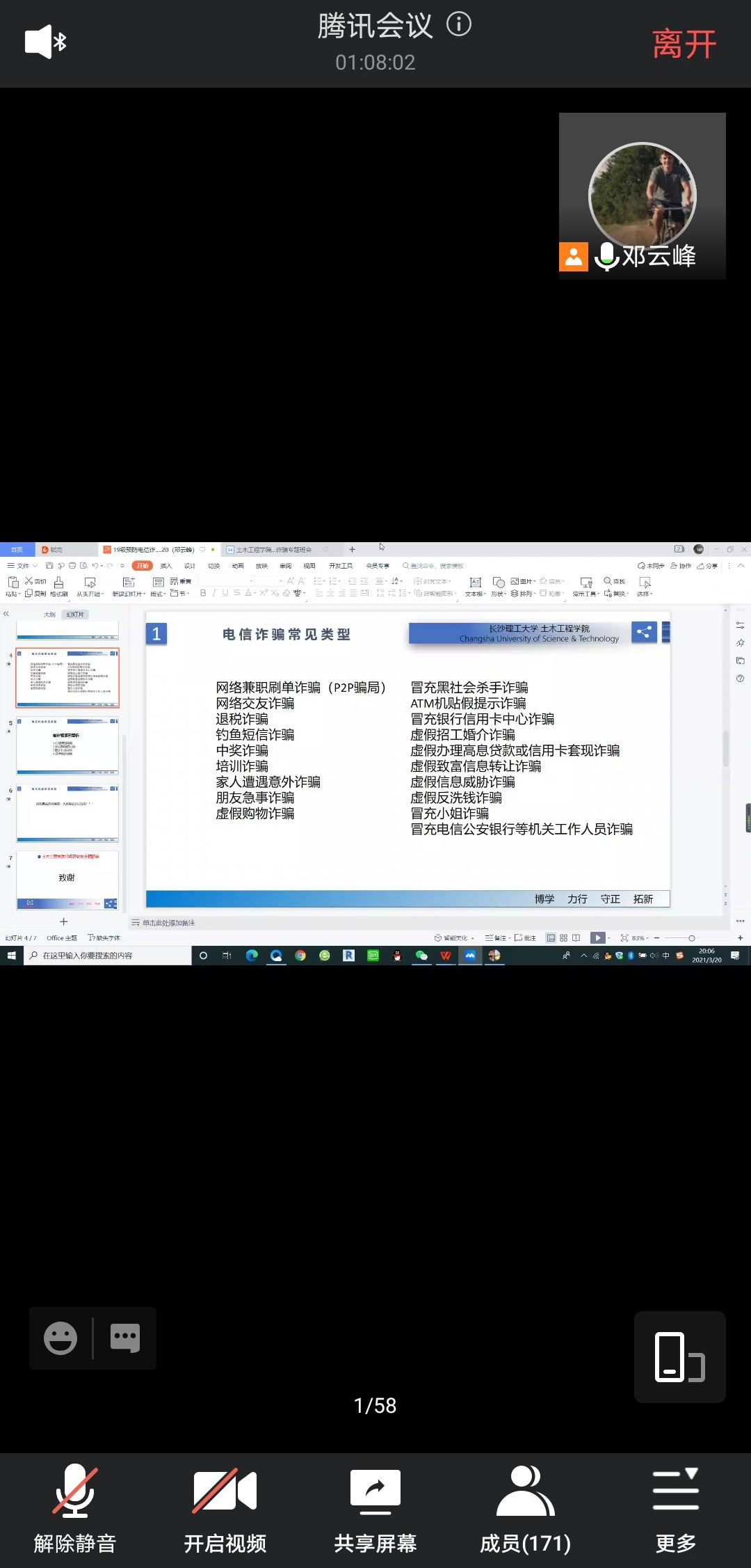 为加强日常管理,预防各类网络电信诈骗事件,提高学生安全上网意识,维护校园安全稳定,3月17日至26日,土木学院组织全体硕士研究生和博士研究生以线上+线下的形式,分年级、分场次开展了“日常管理与防范网络电信诈骗主题班会”,会议由研究生辅导员胡蓉主持召开。