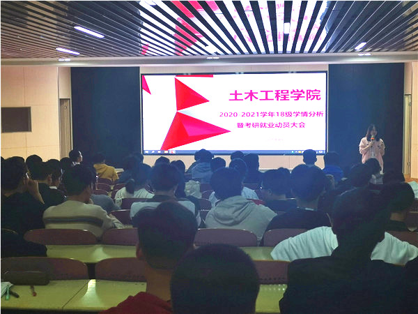 为引导大三学生认清当前考研就业形势,精准定位目标,进一步激发学习热情。4月20日晚在工三A307,2018级全体本科生分两场召开学情分析暨考研动员大会。会议由汪伦老师主持,学院党委副书记黄阿明,18级年级辅导员綦丽、邓文杰出席。