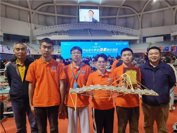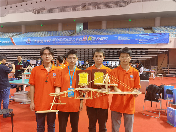 10月14日至17日, 在刚刚结束的“上海建工杯”第十四届全国大学生结构设计竞赛中,我校土木工程学院2019级本科生陈雨飞、余想斌、卿磊组成的参赛队,从众多参赛队伍中脱颖而出,以总分第2名的好成绩获得本届大赛一等奖。城南学院2019级本科生夏圣明、张中亮、20级本科生雷缮诚组成的参赛队设计作品同获一等奖。我校实现连续七届蝉联国赛一等奖(含两届冠军),同时荣获本届大赛“优秀组织奖”,土木工程学院付果副教授获得全国大学生结构设计竞赛“突出贡献奖”。