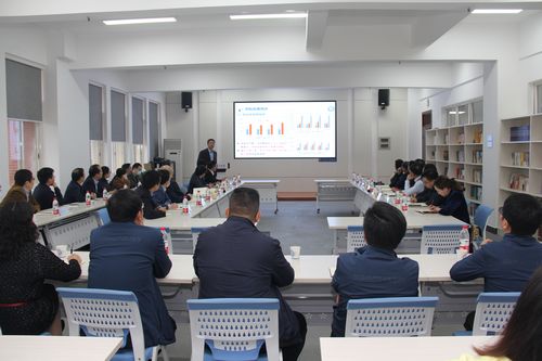 学院党委书记江河以《以高质量党建工作 引领学院高质量发展》为题,从基本情况、开展工作、工作设想三个方面介绍了学院党建工作,提出推进党建与业务工作 “一体化”在“融”字上下功夫、打造党建“特色品牌”在“新”字上求突破、打通内部治理 “任督二脉 ”在“实”字上见成效,全面开创学院党建工作新征程。